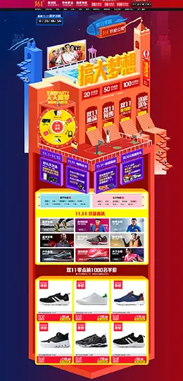 361度运动鞋运动服饰天猫双11预售双十一预售首页页面设计