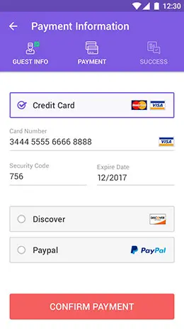 酒店预订及付款流程界面设计