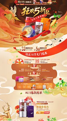 北京同仁堂健康保健食品天猫双11预售双十一预售首页页面设计