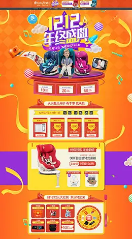 好孩子乐适汽车用品配件安全座椅淘宝双12来了 1212品牌盛典 双十二预售天猫首页页面设计