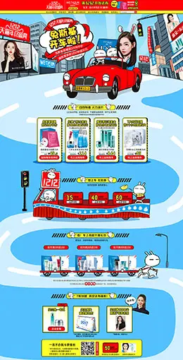 自然堂美妆护肤化妆品彩妆淘宝双12来了 1212品牌盛典 双十二预售天猫首页活动专题页面设计