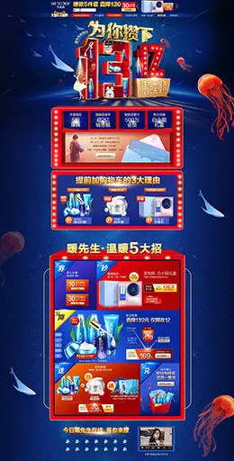 番茄派美妆美容护肤化妆品淘宝双12来了 1212品牌盛典 双十二预售天猫首页活动专题页面设计