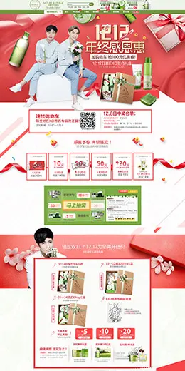 naturerepublic美妆彩妆护肤化妆品淘宝双12来了 1212品牌盛典 双十二预售天猫首页专题页面设计