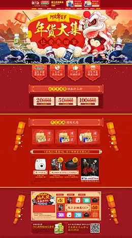 健力多保健健康食品红色喜庆新年春节新春年货节天猫首页活动专题页面设计