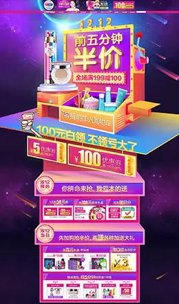 植美村美妆彩妆美容护肤化妆品淘宝双12来了 1212品牌盛典 双十二预售天猫首页专题页面设计