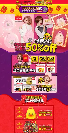 semk时尚女包淘宝双12来了 1212品牌盛典 双十二预售天猫首页专题页面设计