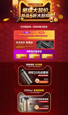 口杯家居用品日用百货淘宝双12来了 1212品牌盛典 双十二预售天猫首页专题页面设计