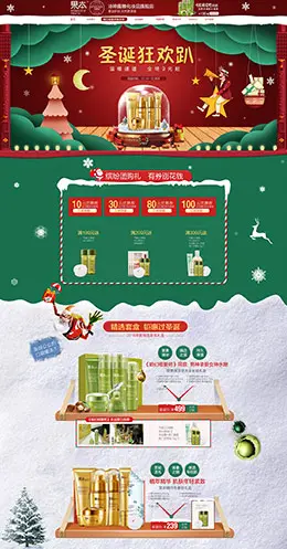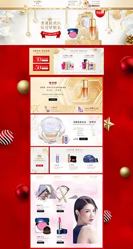 诗婷露雅美妆彩妆美容护肤化妆品圣诞节天猫首页活动专题页面设计