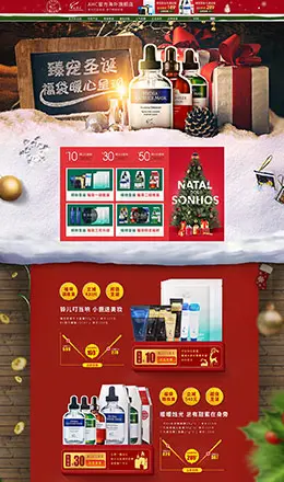 AHC美妆彩妆护肤化妆品圣诞节天猫首页活动专题页面设计