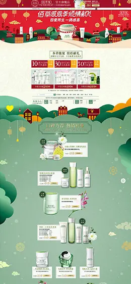 佰草集美妆彩妆护肤化妆品天猫首页活动专题页面设计