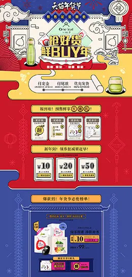 俏十岁美妆彩妆护肤化妆品新年新春春节年货节元宵节天猫首页活动专题页面设计