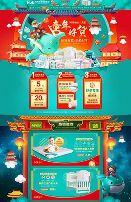 可优比母婴用品儿童玩具童装新年新春年货节 腊八节 天猫首页活动专题页面设计