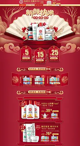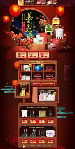 大宝美妆彩妆美容护肤化妆品新年新春年货节 腊八节 天猫首页活动专题页面设计