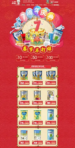 auby澳贝母婴用品儿童玩具童装新年新春年货节 腊八节 天猫首页活动专题页面设计