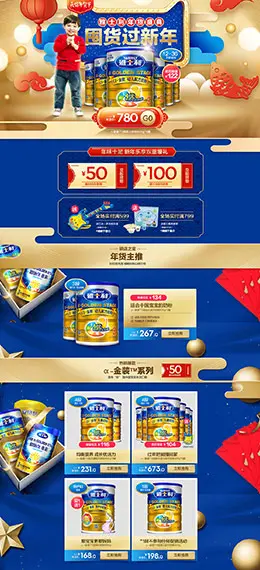 雅士利母婴用品儿童玩具童装新年新春年货节 腊八节 天猫首页活动专题页面设计