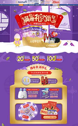 anmum安满母婴用品儿童玩具童装新年新春年货节 腊八节 天猫首页活动专题页面设计