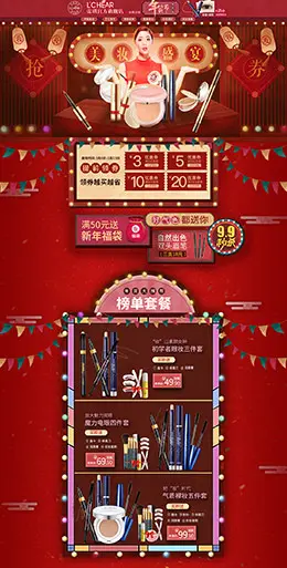 蕾琪美妆美容护肤化妆品新年新春年货节 腊八节 天猫首页活动专题页面设计
