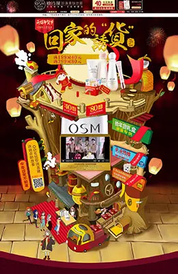 欧诗漫美妆美容护肤化妆品新年新春年货节 腊八节 天猫首页活动专题页面设计