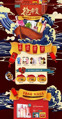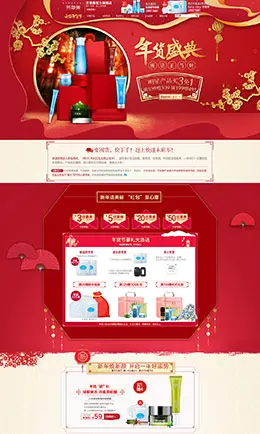 绿叶美妆美容护肤化妆品新年新春年货节 腊八节 天猫首页活动专题页面设计