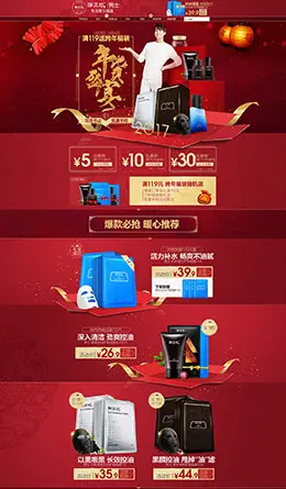御泥坊男士美妆美容护肤化妆品新年新春年货节 腊八节 天猫首页活动专题页面设计