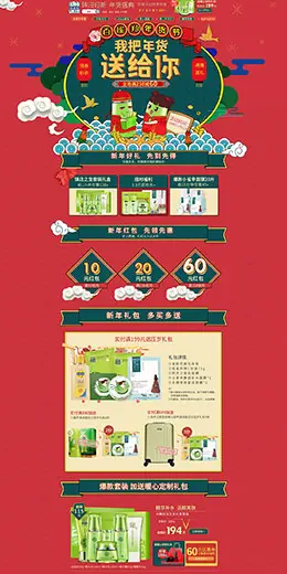 绿叶美妆美容护肤化妆品新年新春年货节 腊八节 天猫首页活动专题页面设计