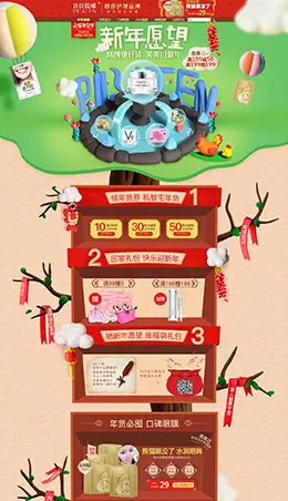 普拉缇娜美妆美容护肤化妆品新年新春年货节 腊八节 天猫首页活动专题页面设计