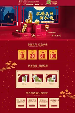 美潮美妆美容护肤化妆品新年新春年货节 腊八节 天猫首页活动专题页面设计