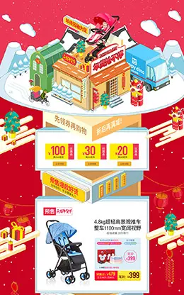 巴布豆中赛母婴用品儿童玩具童装新年新春年货节 腊八节 天猫首页活动专题页面设计