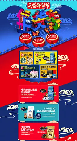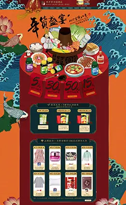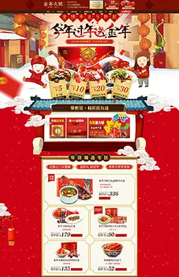 金年食品零食酒水新年新春年货节 腊八节 天猫首页活动专题页面设计