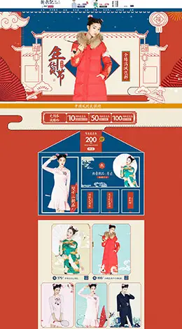 新衣记复古中国风女装服饰新年新春年货节 腊八节 天猫首页活动专题页面设计