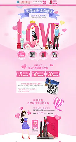 thesaem得鲜美妆美容护肤化妆品 214情人节天猫首页活动专题页面设计