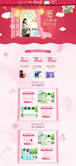 巨型一号美妆美容护肤化妆品 214情人节 元宵节 天猫首页活动专题页面设计