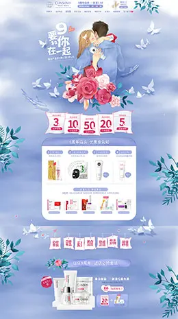 高丝化美妆美容护肤化妆品 214情人节天猫首页活动专题页面设计