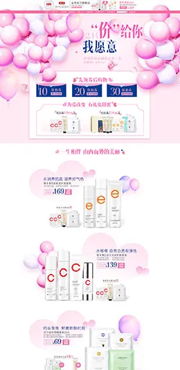 薇诺娜美妆美容护肤化妆品 214情人节天猫首页活动专题页面设计