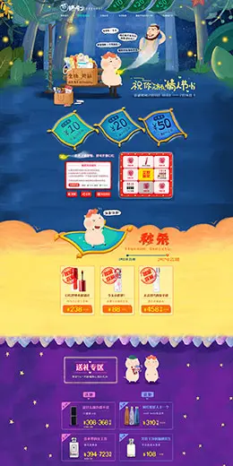 猪哼少美妆美容护肤化妆品 214情人节天猫首页活动专题页面设计