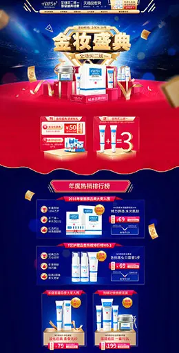 wis美妆彩妆护肤化妆品 金妆奖 金妆盛典 天猫首页活动专题页面设计