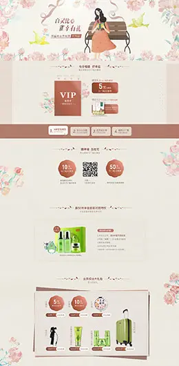 百雀羚美妆彩妆化妆品 会员积分抽奖页 手绘温馨风格专题页面设计