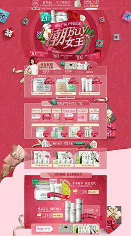 蜜丝佛陀美妆彩妆护肤化妆品 38女王节 妇女节 天猫首页活动专题页面设计