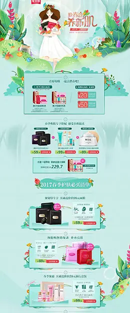 aaskincare 美妆美容护肤化妆品 天猫春夏新风尚 春天春季手绘插画 天猫首页活动专题页面设计