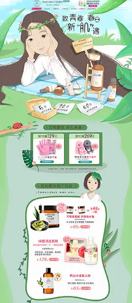 aaskincare 美妆美容护肤化妆品 天猫春夏新风尚 春天春季手绘插画 天猫首页活动专题页面设计
