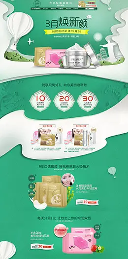 普拉缇娜 美妆美容护肤化妆品 天猫春夏新风尚 春天春季 天猫首页活动专题页面设计