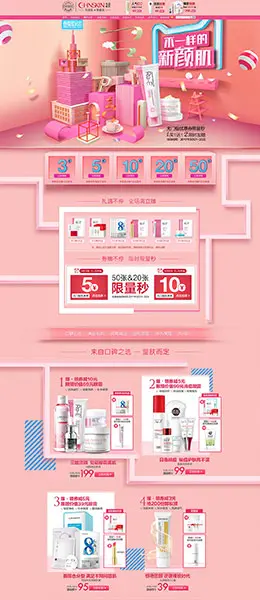 瓷肌 美妆美容护肤化妆品 天猫春夏新风尚 春天春季 天猫首页活动专题页面设计