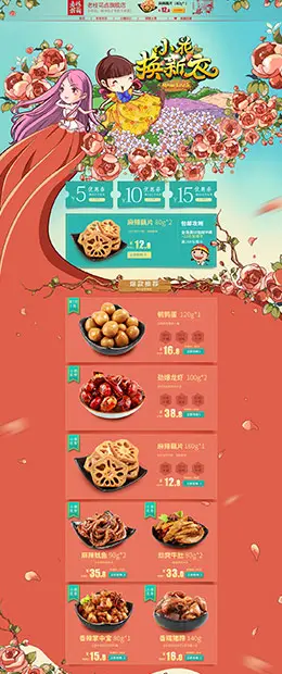 老枝花卤食品零食酒水 春天 春季 天猫首页活动专题页面设计