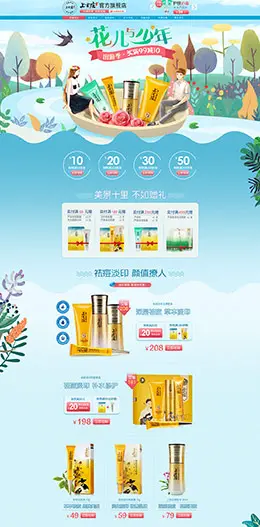 上宫庄 美妆彩妆护肤化妆品 手绘插画插图 天猫首页活动专题页面设计
