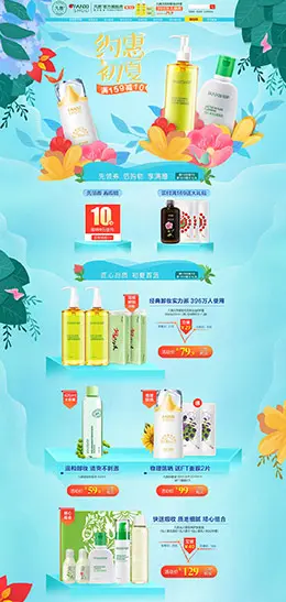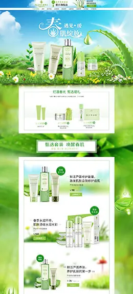 瑷露德玛 美妆彩妆护肤化妆品 绿色春天 春季 天猫首页活动专题页面设计