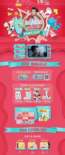大宝 美妆彩妆护肤化妆品 618年中大促 天猫首页活动专题页面设计