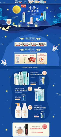 卡姿兰 美妆 彩妆 护肤化妆品 中秋节 天猫首页活动专题页面设计