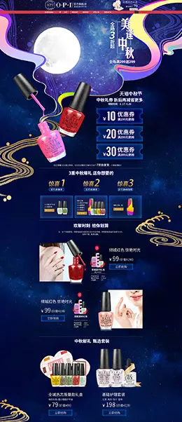 OPI 美妆 彩妆 护肤化妆品 中秋节 天猫首页活动专题页面设计