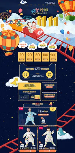 可优比 母婴用品 儿童玩具 童装 双11预售 双十一来了 天猫首页活动专题页面设计