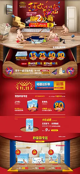 倍康 母婴用品儿童玩具童装 双11预售 双十一来了 天猫首页活动专题页面设计